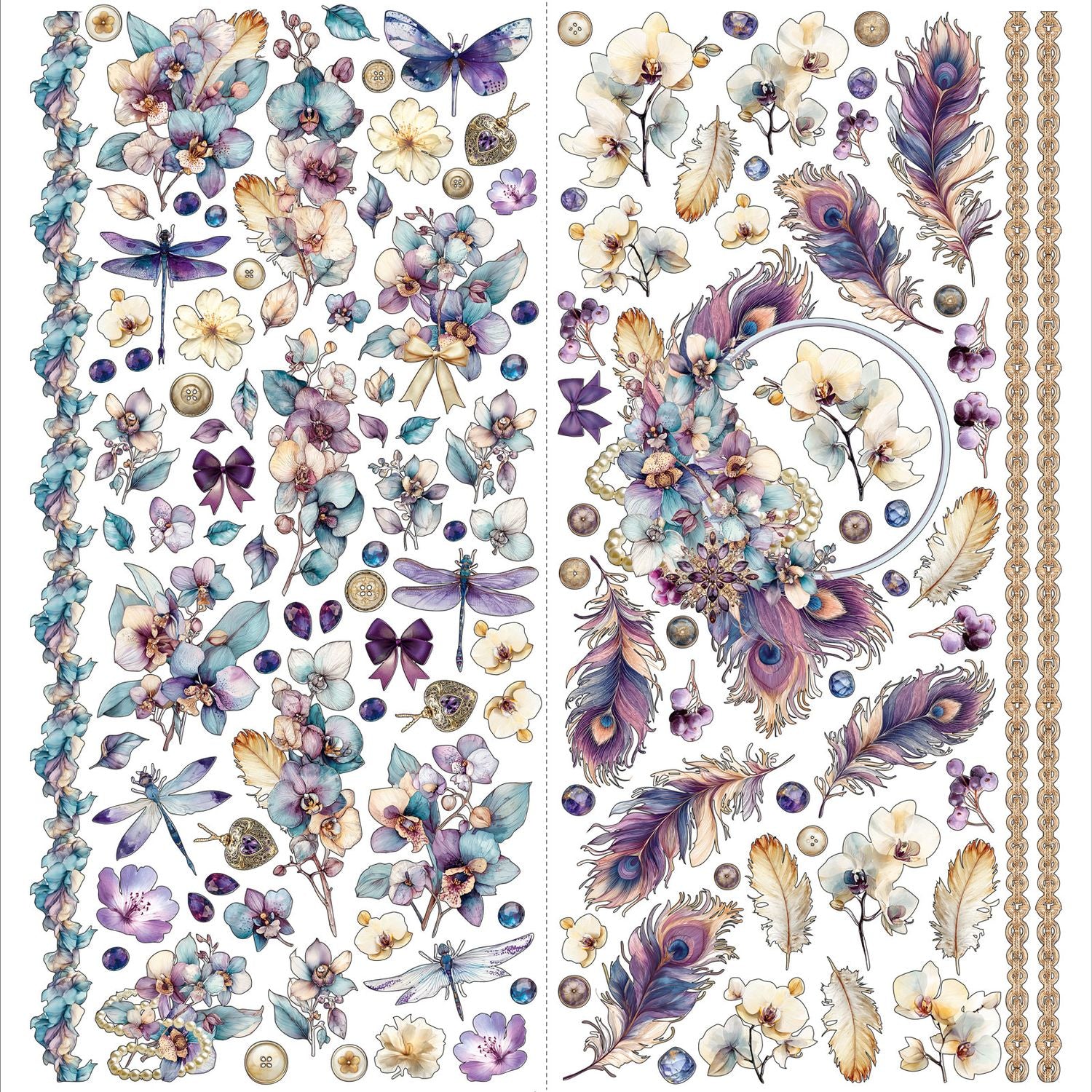 "Elevate your artistry with the Plume & Petal Laser Cut Elements, a suite of precision-engineered designs that bring architectural depth and regal sophistication to your projects. These elements capture the delicate balance between structural geometry and the fluid grace of nature. Design Motifs & Textures Architectural Quatrefoil: The collection is grounded in the timeless Quatrefoil texture, providing a rhythmic, interlaced backdrop that feels both vintage and avant-garde .Intricate Plumes: Signature peacock feathers are rendered with microscopic detail, capturing every barb and eyelet in a display of organic majesty. Theatrical Elegance: Ornate masquerade masks and sweeping floral sprays offer a sense of drama, perfect for creating focal points that demand attention. Musical Sophistication: Subtle, stylized musical motifs celebrate the harmony of the arts, adding a lyrical touch to the physical medium. Regal Frameworks: Stately frames and motifs provide the perfect border, encasing your work in the grandeur of a high-society gallery."