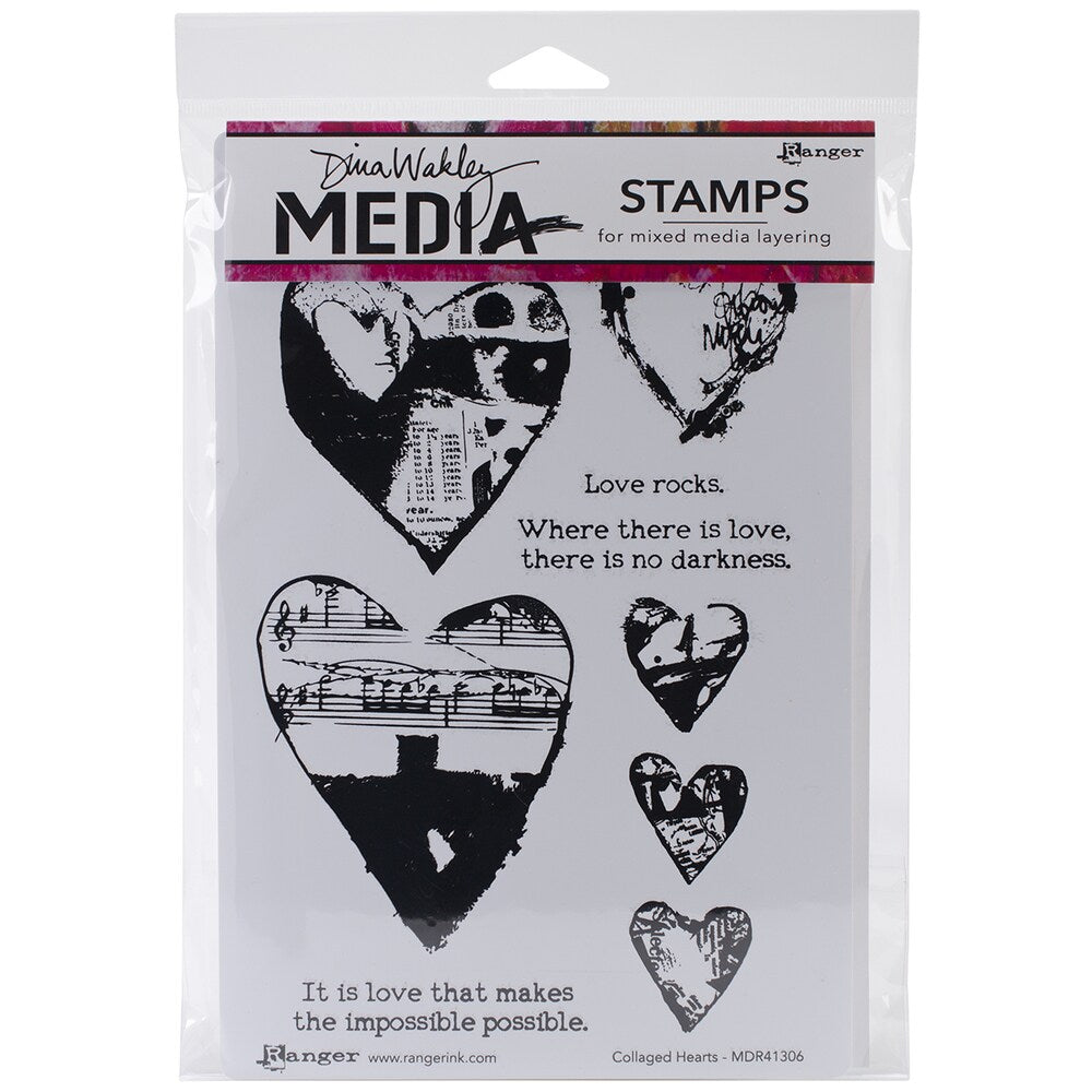 Dina Wakley Media Cling Mount Stamps: Collaged Hearts