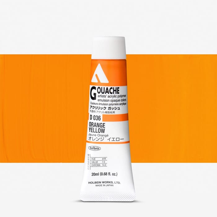 Holbein : Acrylic Gouache : 20ml : Orange Yellow D036